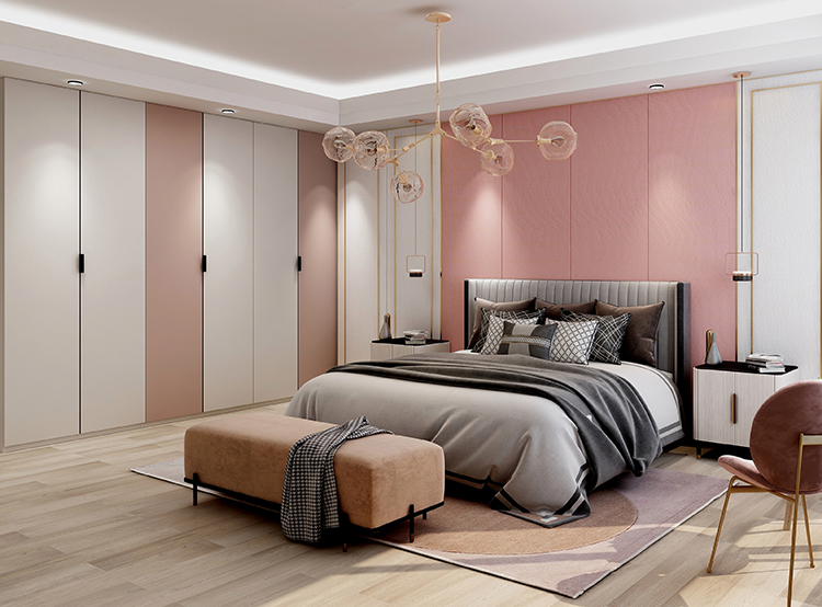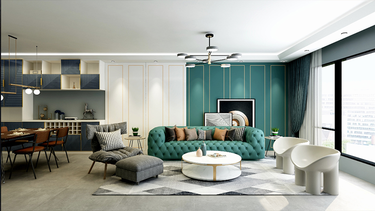 墨綠色背景墻隨和而雅致,鑲嵌金條,起到平衡的作用,為整體家裝增添“吸睛點”,提升現代感的同時,也暖化了空間。