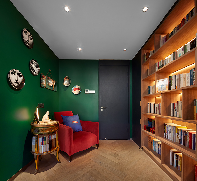 灰色墻面作為打底,點綴濃郁的紅綠黃三色,