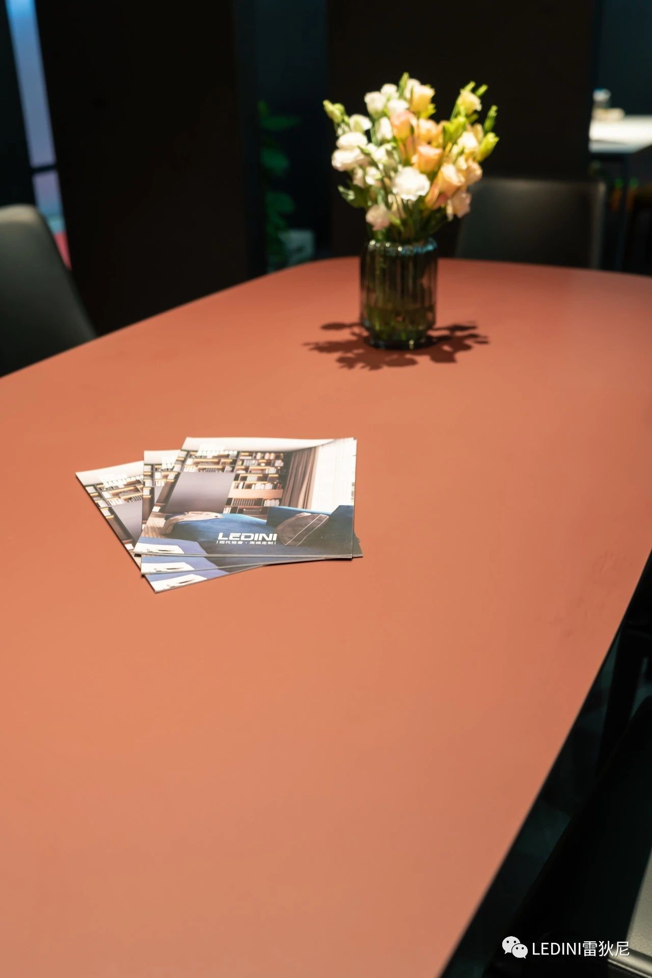 兩套餐廳look皆搭配了LEDINI新品意大利小牛皮餐椅,