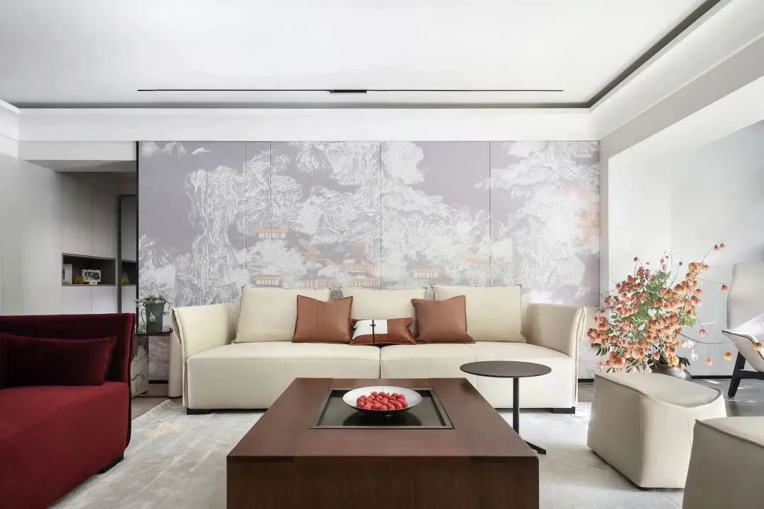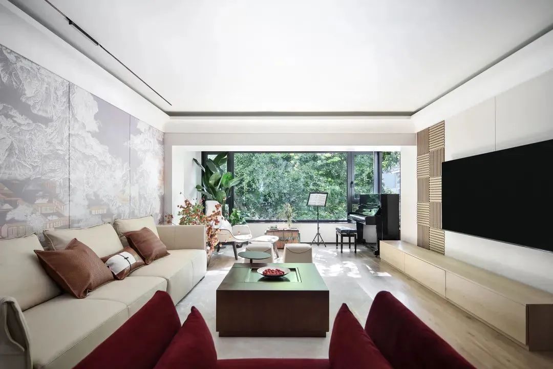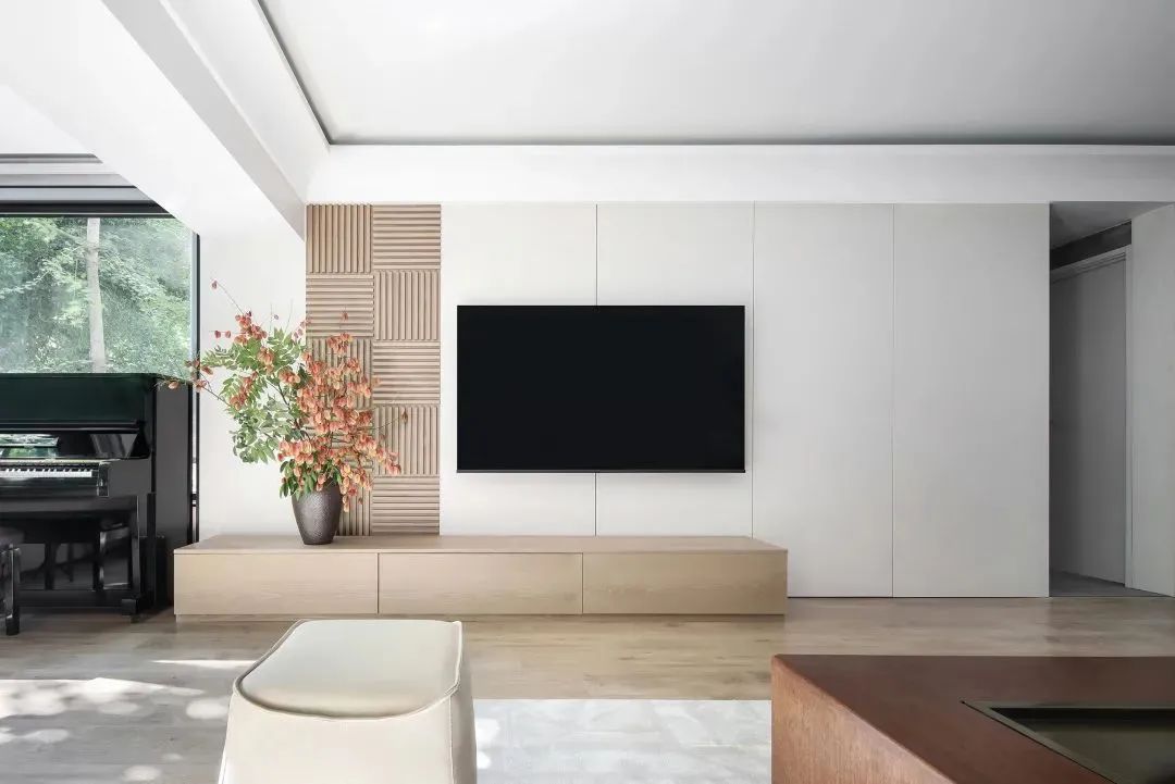 客廳電視背景墻采用了0度膚感漆工藝,手感超順滑,如同嬰兒般肌膚一樣細(xì)膩,質(zhì)感一流。