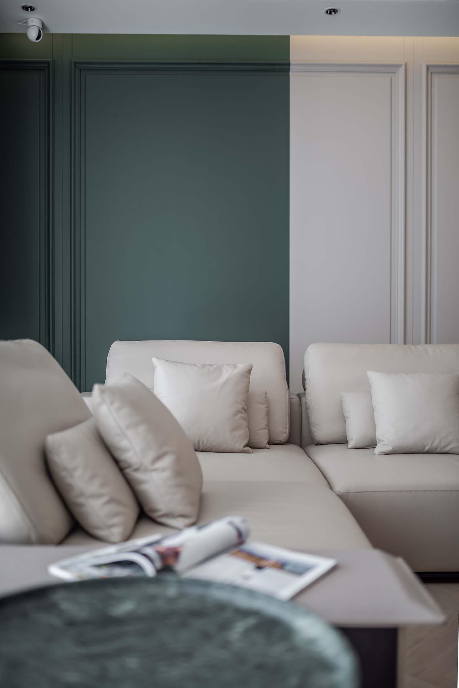 以綠色為基調,穿插白色和米灰色,