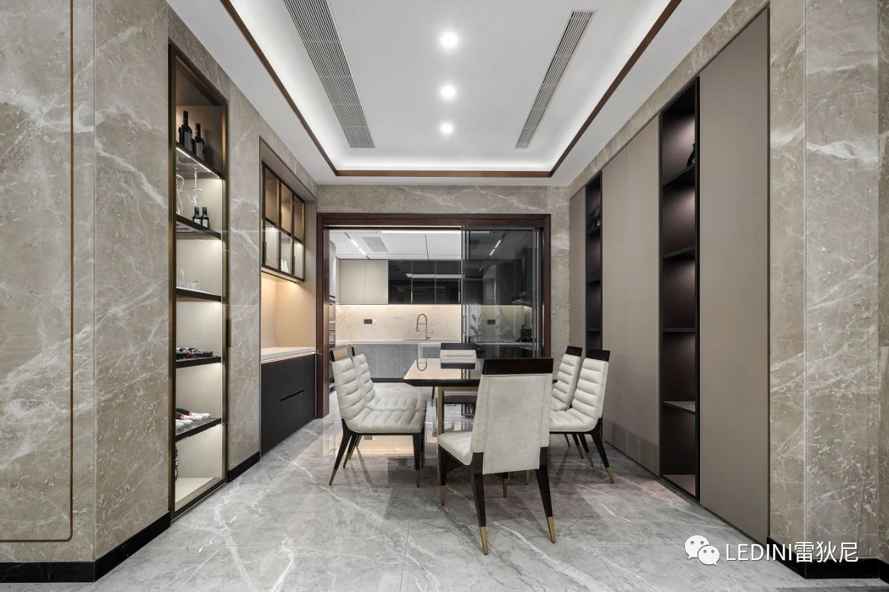餐邊柜大面積的高級灰使整個空間沉穩克制,
